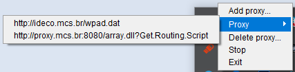 При нажатии на этот пункт меню периодическое прописывание адреса сценария в реестр приостанавливается. Возобновить можно выбрав нужный адрес в пункте Proxy.